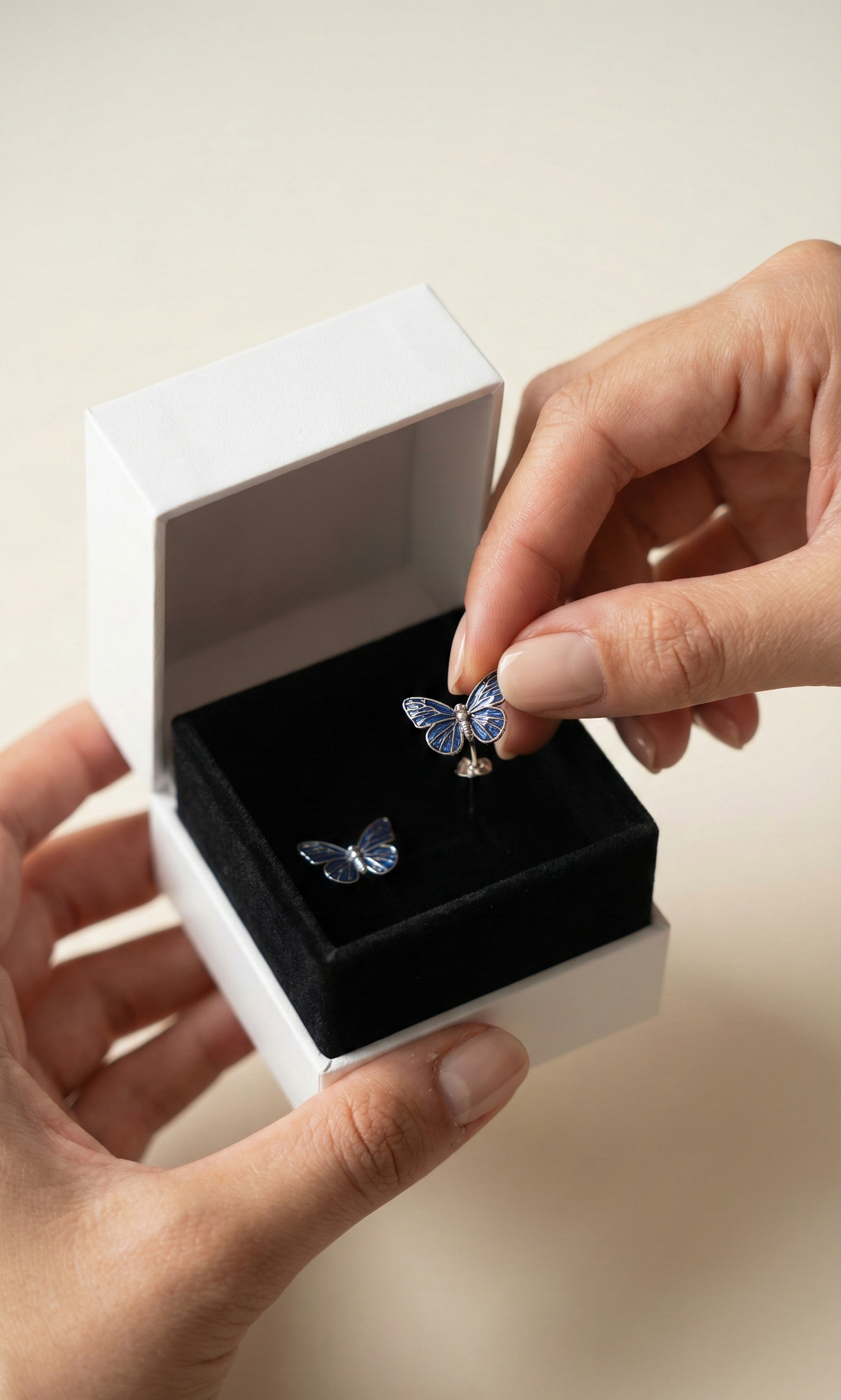 A embalagem foi concebida como parte da experiência. Um invólucro que protege a joia e valoriza o momento do presente, com a mesma atenção dedicada à criação da peça.
